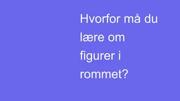 Hvorfor må du lære om figurer i rommet?I denne videoen ser du eksempler på figurer i rommet, som pyramider og prismer. Oppdag hvordan du kan se disse tredimensjonale figurene rundt deg.0%FerdigFortsett