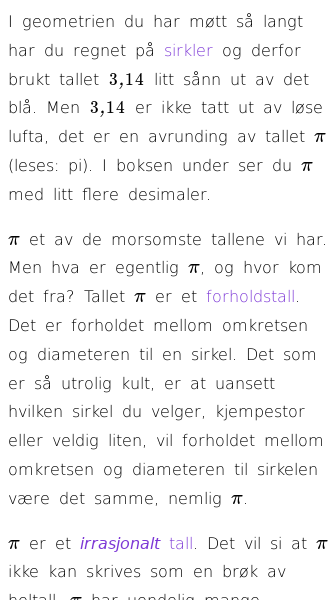 • Hva er sirkelkonstanten pi?