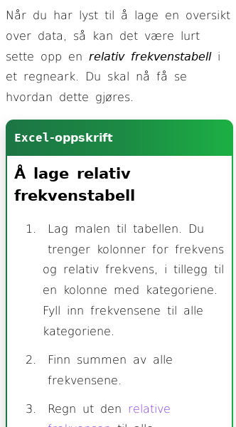Oppslag om Hvordan finne relativ frekvens i Excel