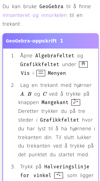 Oppslag om Hvordan finne innsirkel og innsenter med GeoGebra