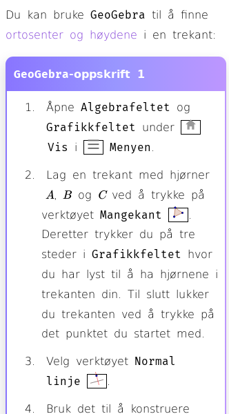 Oppslag om Hvordan finne ortosenter og høyder med GeoGebra