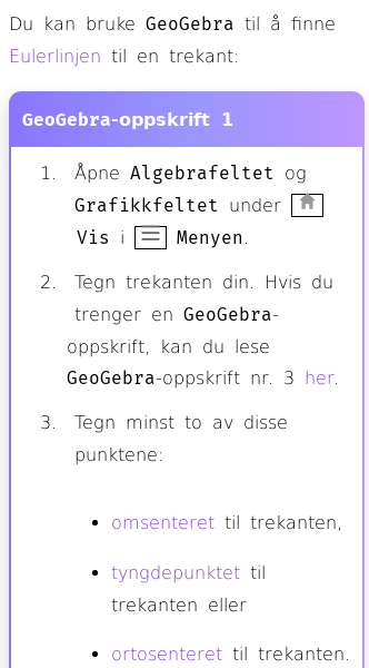 Oppslag om Hvordan finne Eulerlinjen med GeoGebra