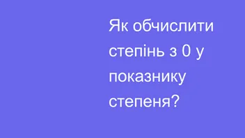 У цьому відео ти навчишся розраховувати степінь з показником 0. Будь-яке число в нульовому степені дорівнює одиниці, за винятком випадків, коли основа дорівнює 0.