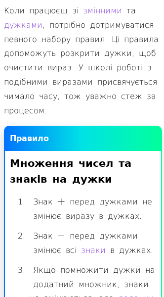 Стаття про Які є правила розкриття дужок?