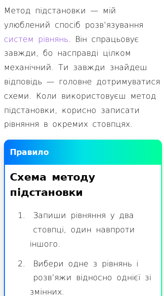 • Розв'язування систем рівнянь методом підстановки