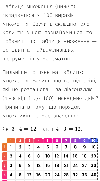 Стаття про Добутки яких чисел дають відповіді в таблиці множення?