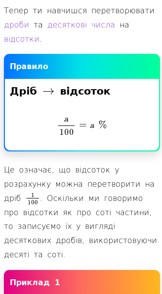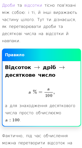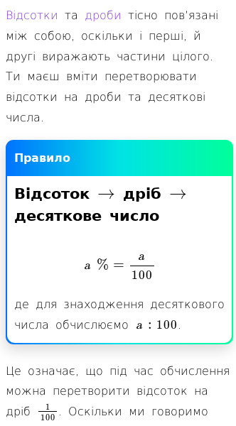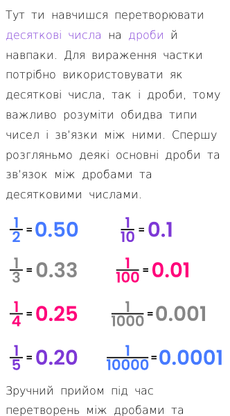 Стаття про Перетворення між дробами, десятковими числами та відсотками