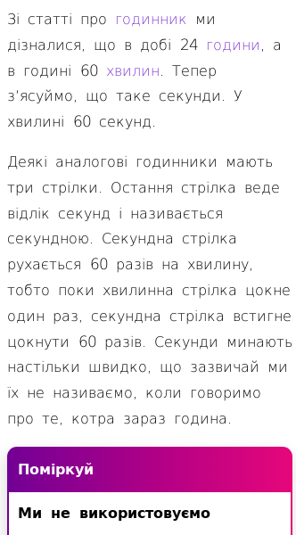 • Знайомство з годинником (секунди)