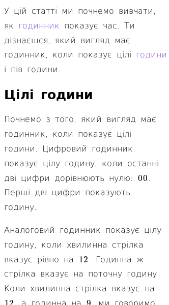 Стаття про Знайомство з годинником (цілі години та пів години)