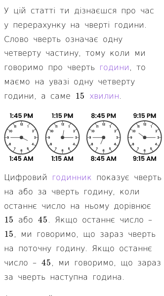 Стаття про Знайомство з годинником (чверть години)