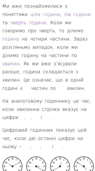 • Знайомство з годинником (чверть години)