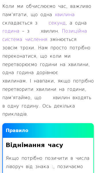 • Усні обчислення з часом