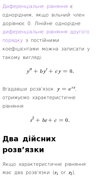 • Однорідні диференціальні рівняння другого порядку з постійними коефіцієнтами