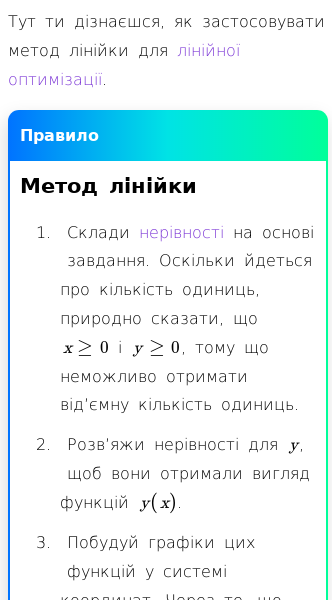 • Як застосовувати метод лінійки для лінійної оптимізації