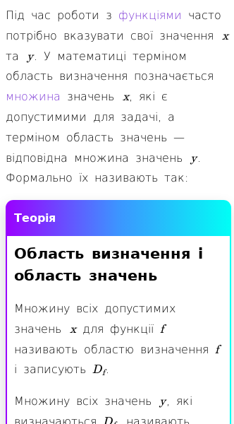• Обчислення області визначення та області значень у математиці