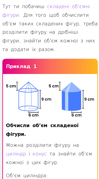 • Як обчислювати площу поверхні та об’єм складених об'ємних фігур