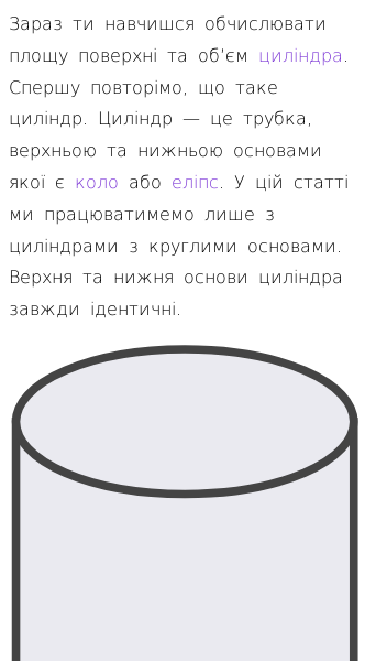 • Як обчислити площу поверхні та об’єм циліндра