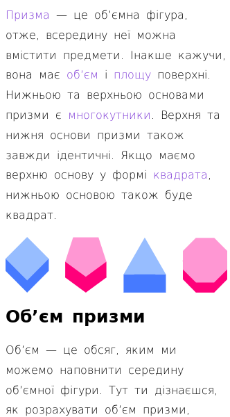 • Як обчислювати об’єм і площу поверхні призми