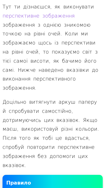 • Як виконувати перспективне зображення з однією зникомою точкою