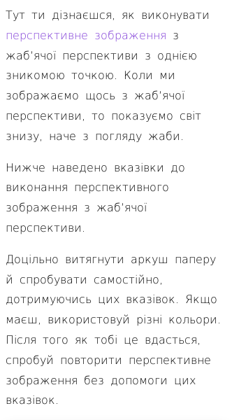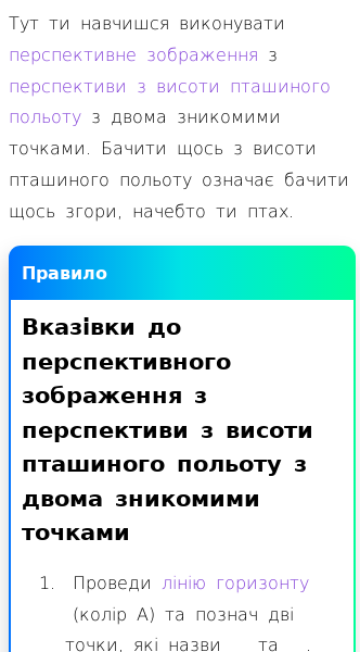 • Перспективне зображення з жаб’ячої перспективи з двома зникомими точками