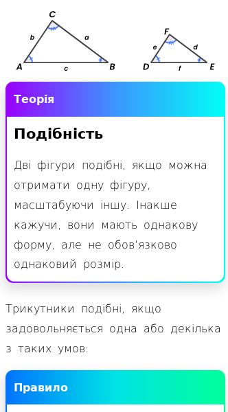 • Яке визначення подібних фігур?