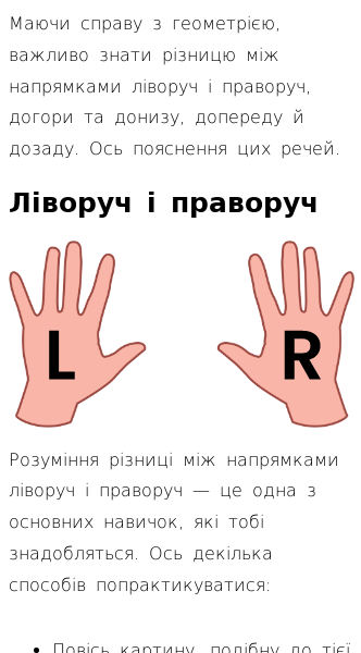 • Ліворуч і праворуч, догори та донизу, допереду й дозаду