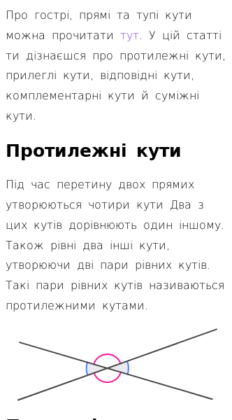 Стаття про Пари кутів (протилежні, прилеглі та суміжні кути)