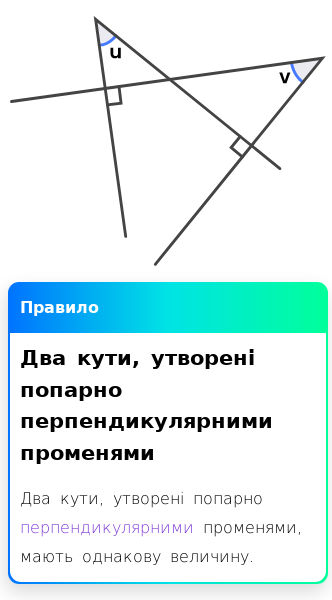 • Пари кутів (протилежні, прилеглі та суміжні кути)
