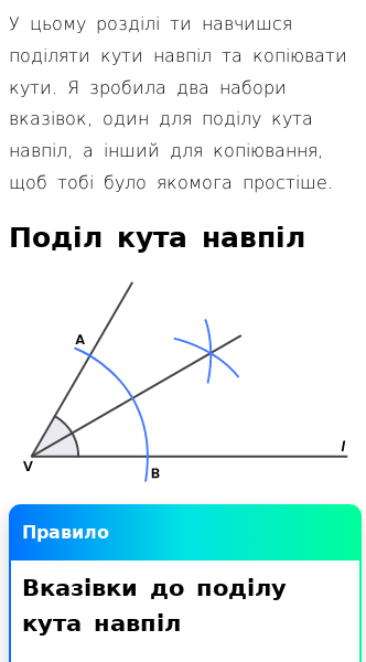 • Що означає поділ кута навпіл?