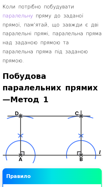 • Кроки до побудови паралельної прямої через точку