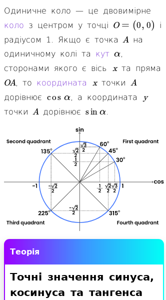 • Синус, косинус і тангенс та їхні обернені функції