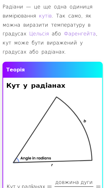 • Як використовувати радіани для обчислення величини кута?