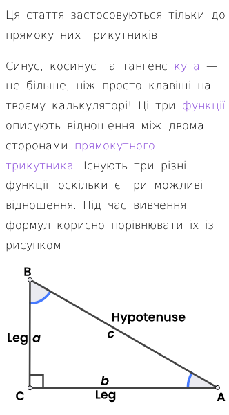 Стаття про Синус, косинус і тангенс та їхні обернені функції
