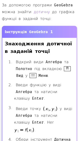 Стаття про Як графічно зобразити миттєву швидкість зміни функції в програмі GeoGebra