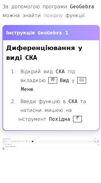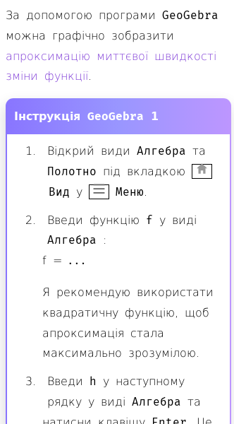 • Як графічно зобразити миттєву швидкість зміни функції в програмі GeoGebra