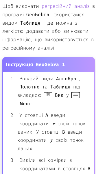 Стаття про Як виконувати регресійний аналіз у GeoGebra